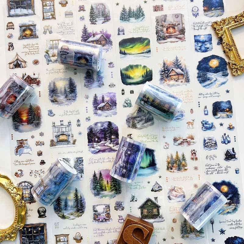 Description: <cloud snow> PET tape roll. Pre-cut. Journal supplies, scrapbook supplies, planner sticker, journal stickers.