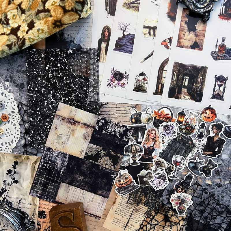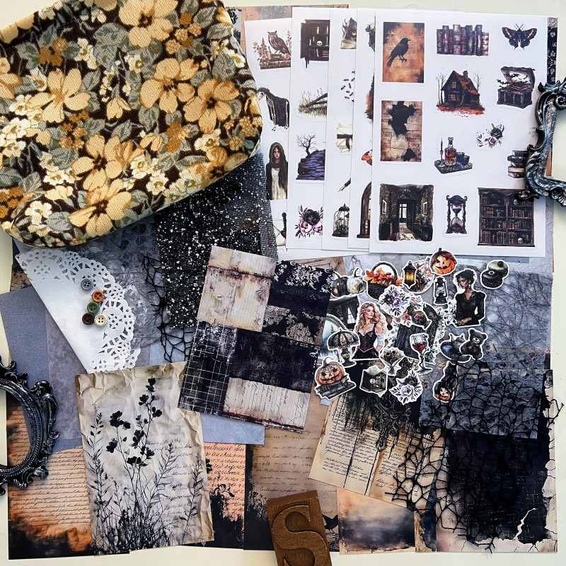 The Dark Cottage Library Pack is specially designed by blending dark gothic aesthetics with cottagecore and book-inspired themes. It features a rich mix of elements such as dark tones, animals, gothic details, cottagecore textures, books, reading motifs, and letter-style designs. The pack includes meshes and textured papers, all neatly packed in a storage case for easy carrying and organization.