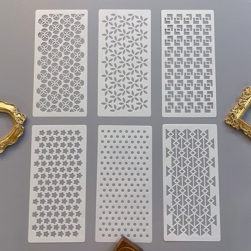 Description: DIY decorative stencil set. 6PCS included. A stencil for bullet journaling or scrapbooking is a useful tool that helps create clean, consistent designs quickly and easily. It allows for customization and flexibility in planning, while saving time and reducing errors. Stencils come in a variety of designs and sizes to suit different needs and styles.