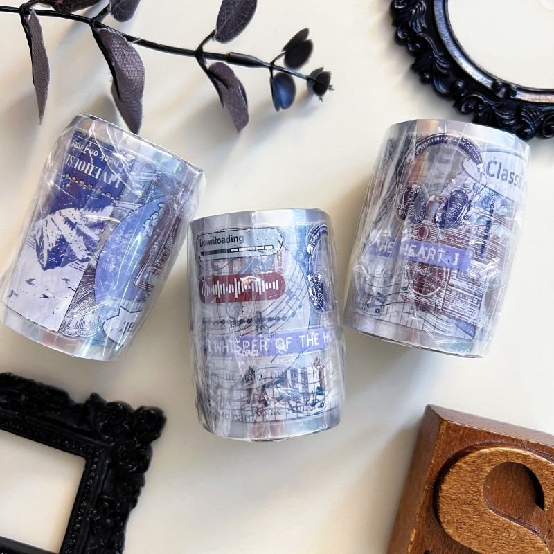 Description: Xiao Bai Jia’s <echo record> PET tape. Pre-cut. Journal supplies, scrapbook supplies, planner sticker, journal stickers.