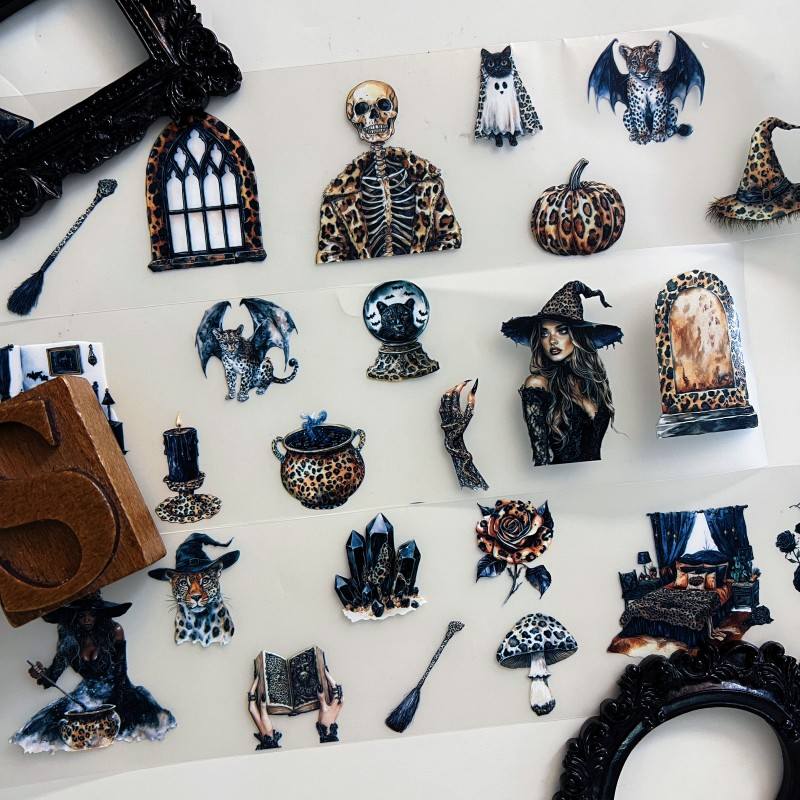 Description: <leopard witch> PET tape roll. PET matte material. Journal supplies, scrapbook supplies, planner sticker, journal stickers.