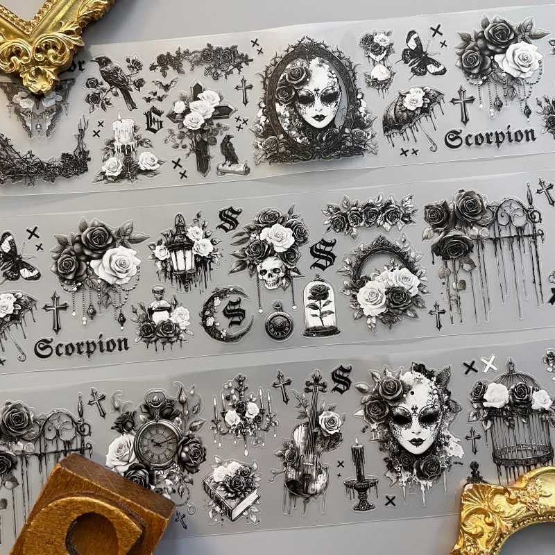 Description: Dong Xi’s <monochrome stillness> PET tape roll. Pre-cut. Journal supplies, scrapbook supplies, planner sticker, journal stickers. 🛑This is a WHOLE ROLL❗️