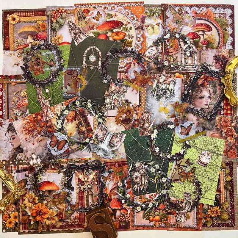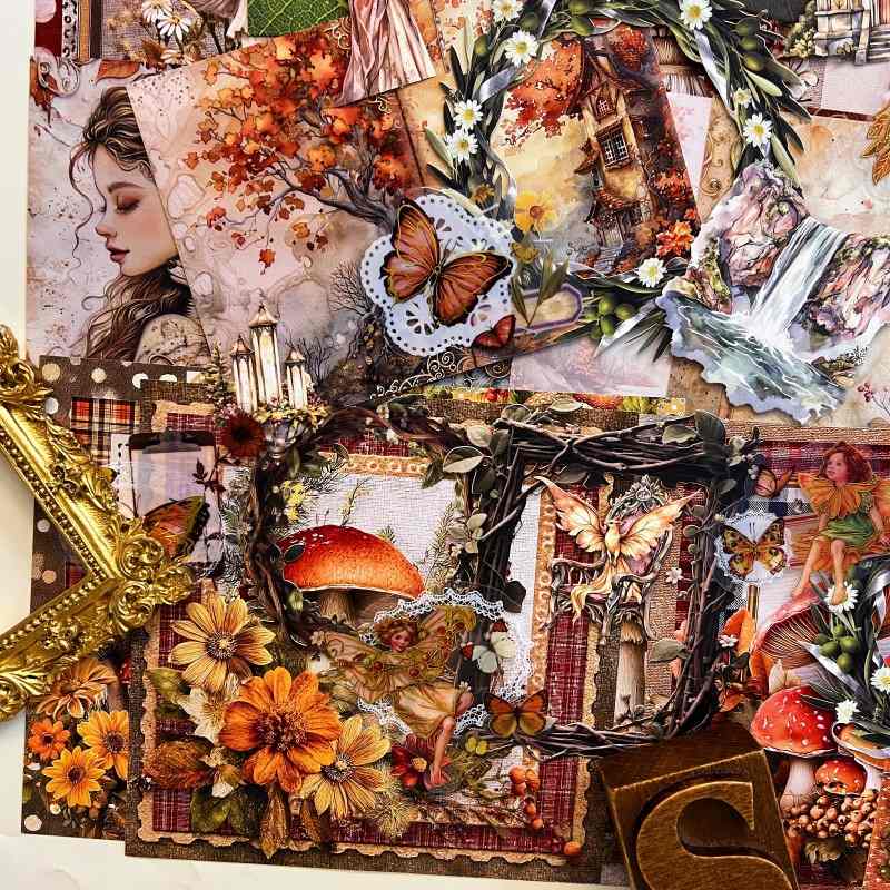 Description: pixie glow ephemera mystery kit. This ephemera mystery kit features essential elements for journaling, including fairies, trees, butterflies, flowers, lace, frames, landscapes and more. DIY craft kit for journaling and scrapbook. Very friendly for journaling beginners.