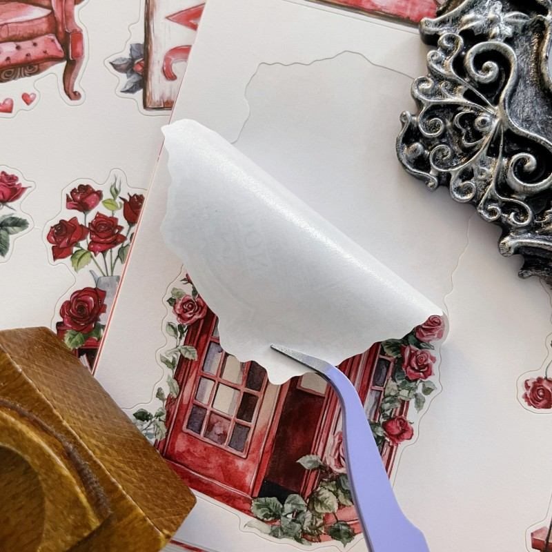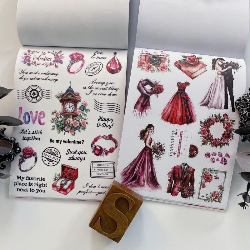 Description: Dan Sheng's <Rose Garden Of Love> sticker book. 20 sheets. This sticker book features elements including girls, boys, flowers, desserts, houses, buildings, landscapes, love-themed decorations and more. It's the perfect choice for journaling enthusiasts.
