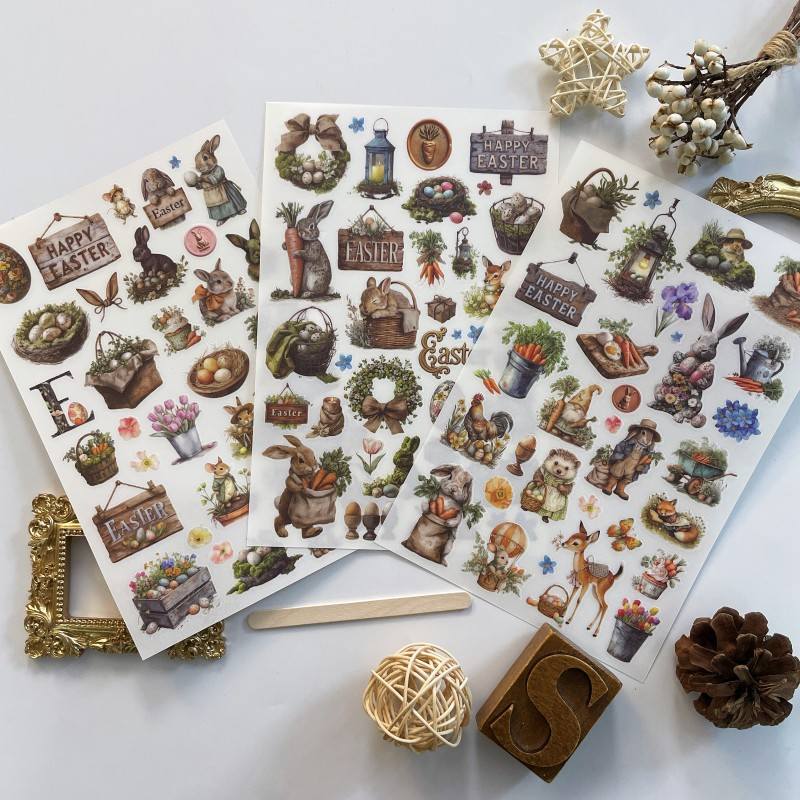Description: Cheeserabbit Studio's <soft blue Easter> transfer sticker. 3Sheets. Perfect for all type of vintage journal, mini journal, scrapbook and other paper crafts.