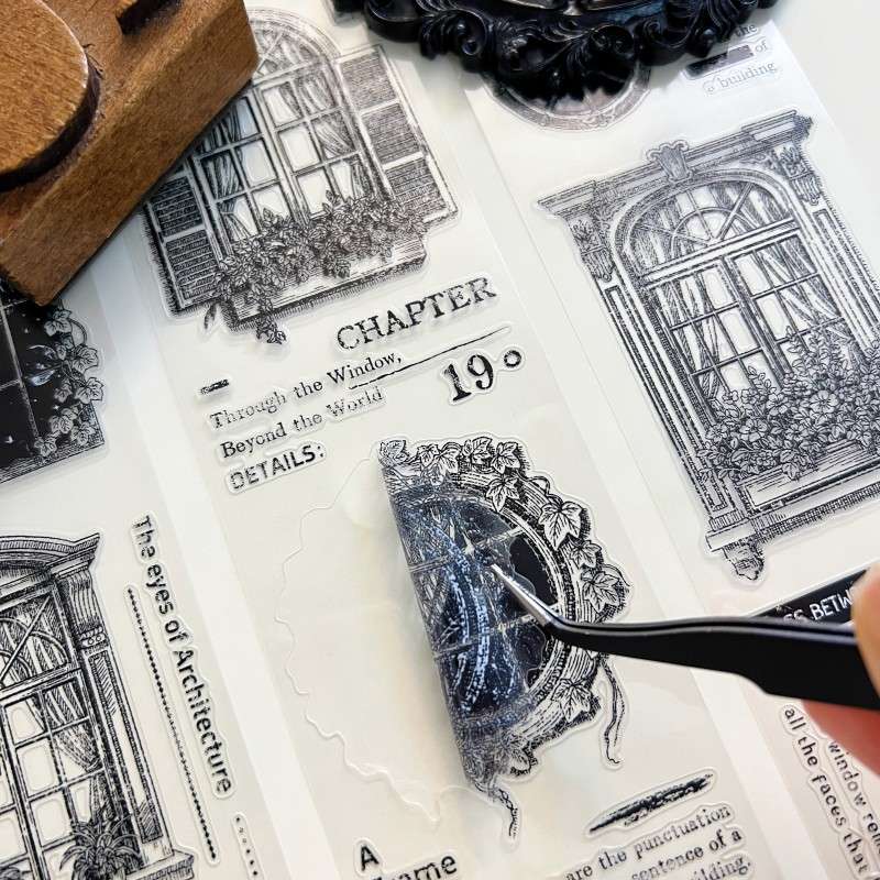 Description: Xiao Bai Jia’s <still window> PET tape. Pre-cut. Journal supplies, scrapbook supplies, planner sticker, journal stickers.
