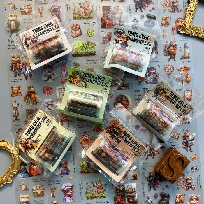 Description: Tomato-jam Girl's <Tom's life> PET tape roll. Pre-cut. Journal supplies, scrapbook supplies, planner sticker, journal stickers.