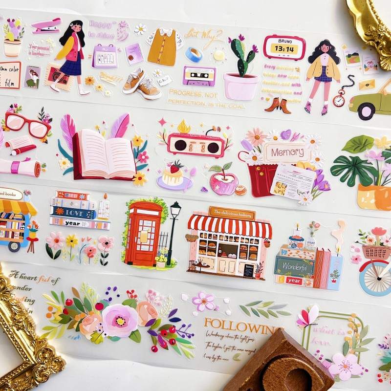 Description: Wubao’s <tranquil mood> tape roll set. PET Matte material. Pre-cut. 4 whole rolls in one collection. Journal supplies, scrapbook supplies, planner sticker, journal stickers.