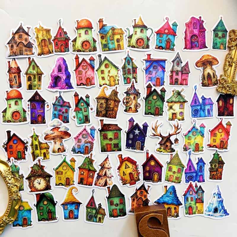 Description: weird cabin stickers. 56 PCS. Perfect for all type of journal, mini journal, scrapbook and other paper crafts.